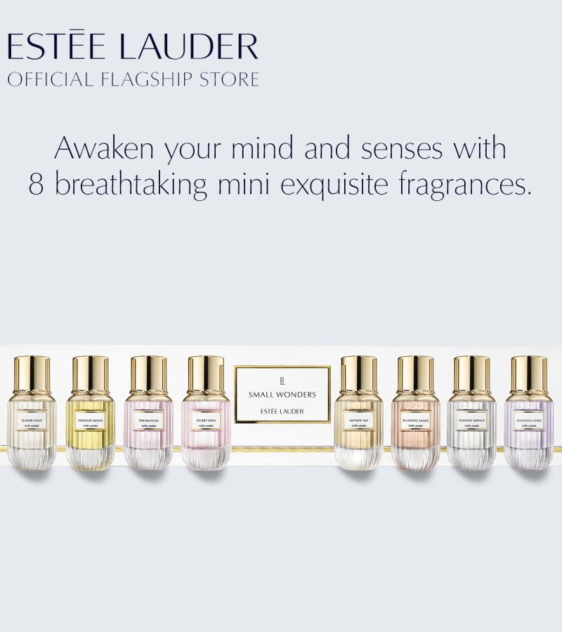 Let your mind imagine them. Let your senses feel them. Discover 8 breathtaking fragrances that capture the beauty of nature and awaken your imagination, to experience undiscovered places fragrance has never taken you before. This exquisite collection includes all 8 fragrances in our Luxury Collection, in Eau de Parfum Deluxe Mini Sprays (4ml each): TENDER LIGHT: Feel the joy and warmth of sunlight and be lifted to a palace of dreams. • Citrus Green: Chinese Tea Accord, Bergamot and Florentine Iris. SENSUOUS STARS: Enjoy the sensual tranquility of a walk under a moonlit sky. • Fruity Chypre: Chinese Plum, Lavender and Orris. DREAM DUSK: Enter a secret garden where flurries of petals lead you from day into night. • Floral Marine: Cherry Blossom, Blackcurrant Buds and Geranium. RADIANT MIRAGE: Follow a timeless road to a new realm of the senses just beyond reach. • White Floral Woody: Jasmine Sambac, Sandalwood and Patchouli. DESERT EDEN: Imagine the moment when the sun’s rays spread over the desert at dawn. • Woody Floral: Sandalwood, Turkish Rose and Olibanum. BLUSHING SANDS: Let your senses lead you in a dream journey across rose-tinted sands. • Woody Vetiver: Vetiver Haiti, Pink Pepper and Musk Accord. PARADISE MOON: Escape to a moonlit forest filled with temptations for the senses. • Leather Floral: Osmanthus, Cistus Oil and Leather Accord. INFINITE SKY: Rise up into a brilliant sunset sky, thrilling your senses with rare beauty. • Amber Spicy: Sichuan Pepper, Madagascar Vanilla and Leatherwood. How To Use Take your mind and your senses on an enchanted journey by spraying onto pulse points, or anywhere you like to wear your fragrance. What it is An exquisite gift set that awakens your mind and your senses with all 8 fragrances in the Estée Lauder Luxury Collection, in Deluxe Mini Sprays.