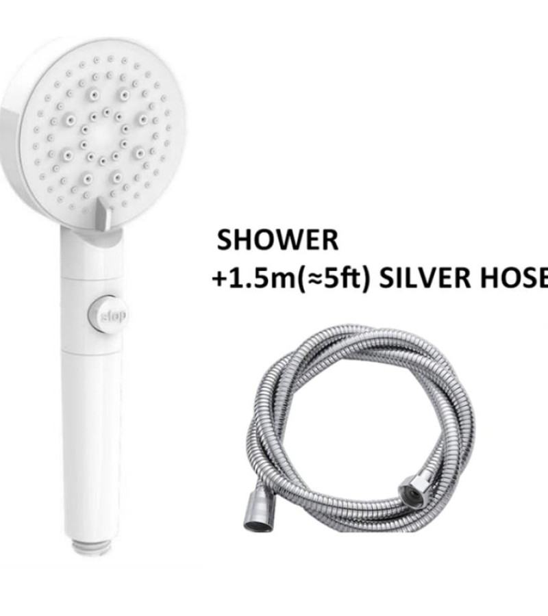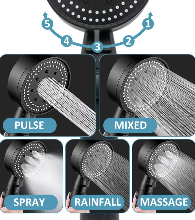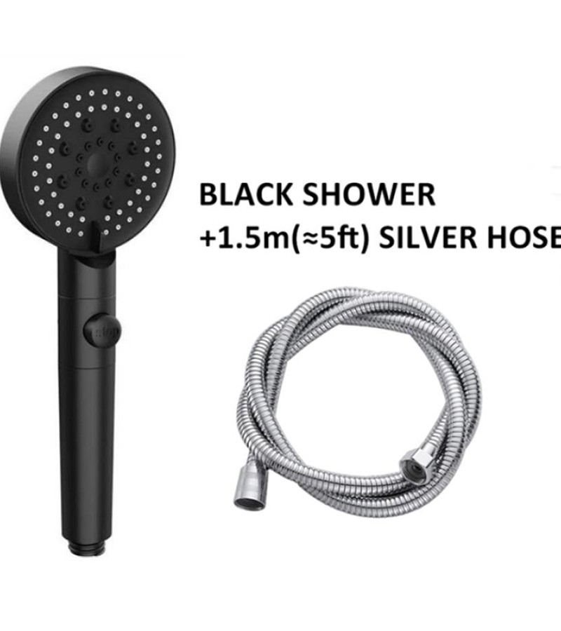 High Pressure Shower Head 5 Modes Adjustable Showerheads with 1.5m Hose Water Saving One-Key Stop Spray Nozzle Bathroom Showerhead Accessories