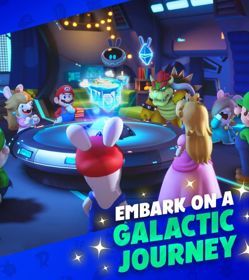 Team up with Mario, Luigi, Princess Peach, Rabbid Peach, Rabbid Luigi, and their friends on a galactic journey to defeat a malevolent entity and save your Spark companions. Explore planets throughout the galaxy as you uncover mysterious secrets and compelling quests!
